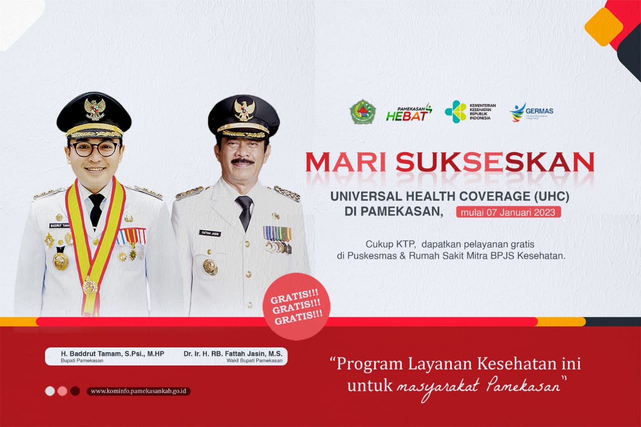 kliksurabaya.co.id-Pemerintah Kabupaten (Pemkab) Pamekasan, Madura, Jawa Timur di bawah kepemimpinan Bupati Baddrut Tamam telah memberikan layanan kesehatan gratis kepada warganya sejak tanggal 7 januari 2023 melalui program universal health coverage (UHC).