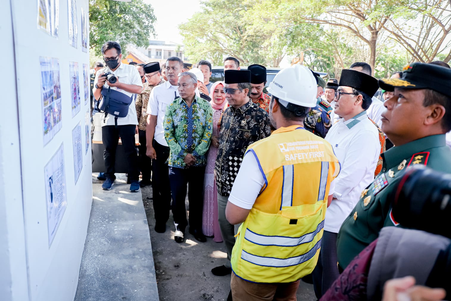 kliksurabaya.co.id-Menteri Koordinator Bidang Politik, Hukum, dan Keamanan Republik Indonesia (Menko Polhukam RI), Prof Mahfud MD bersama Bupati Pamekasan, Baddrut Tamam meninjau pembangunan Pasar Kolpajung, Sabtu (27/5/2023).